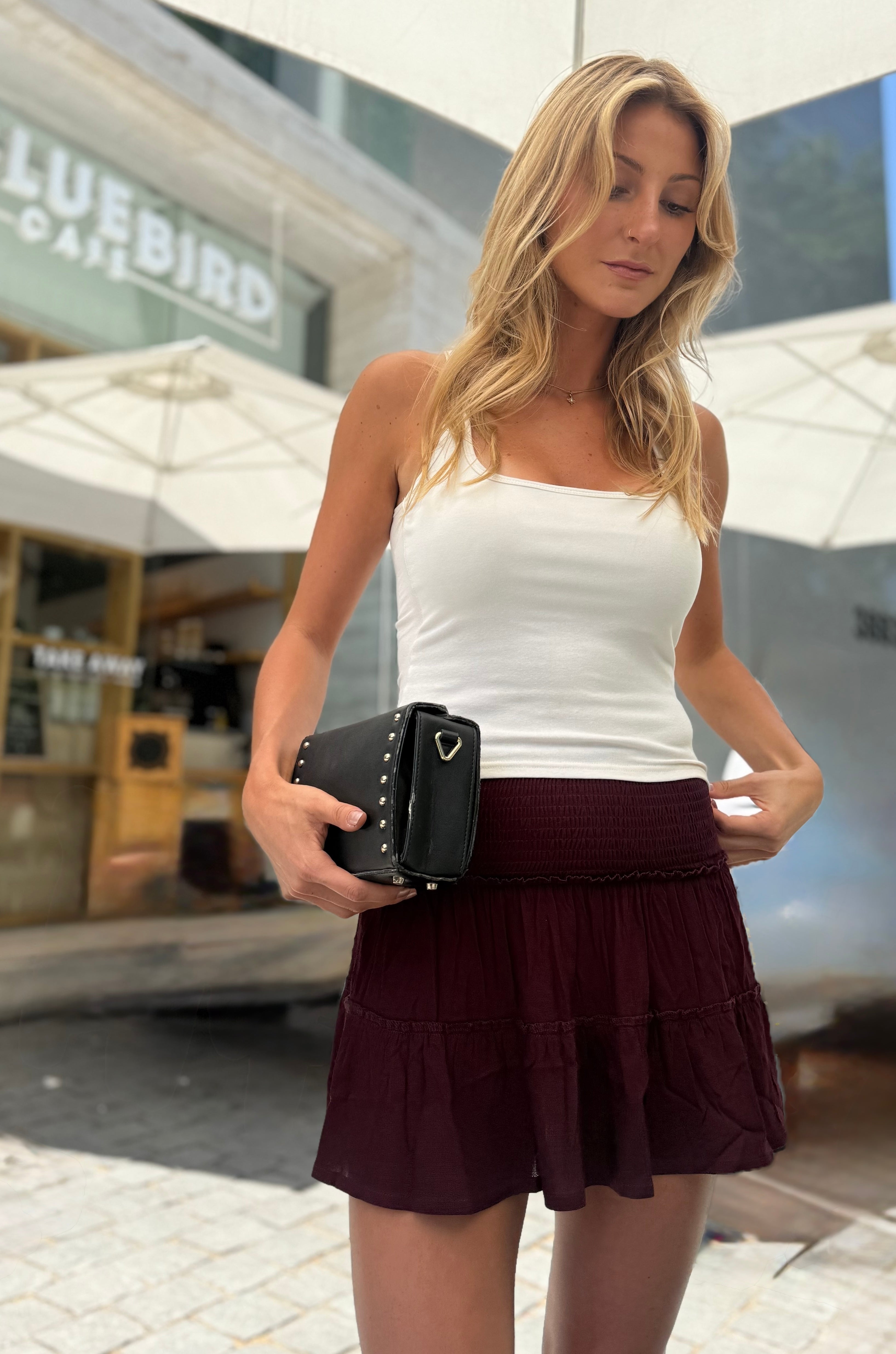 Esta mini es perfecta! Es elasticada, comodísima y está hecha con un lino exquisito, muy suave y ligero, lo que hace que tenga una caída increíble.